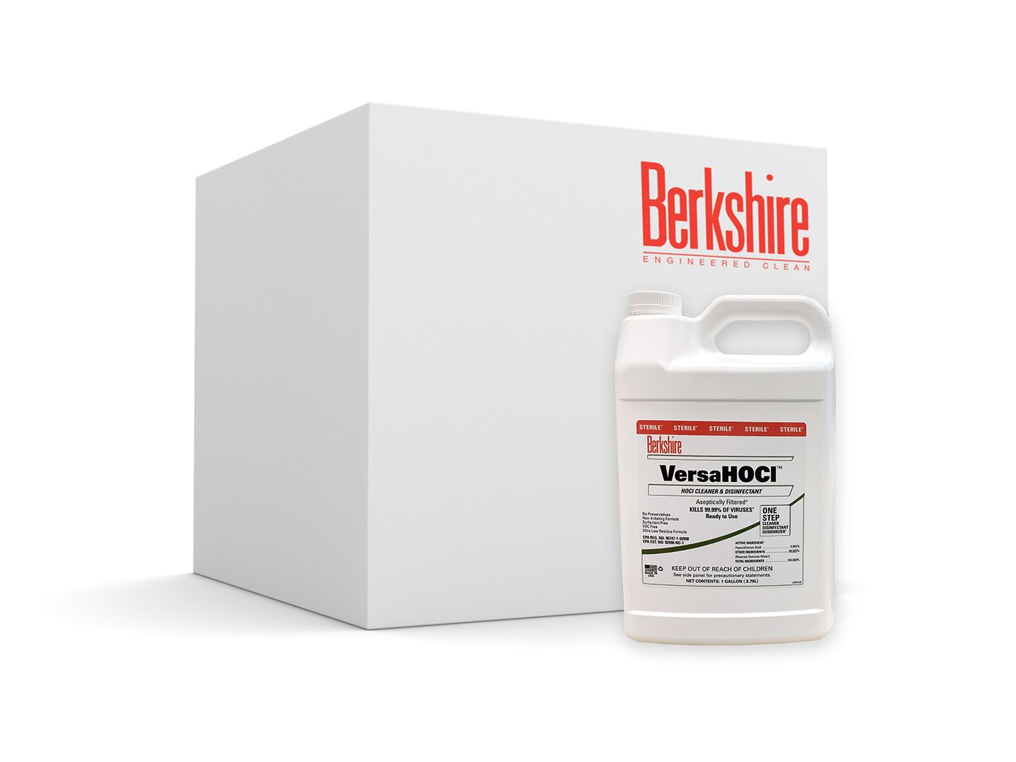 Sterile VersaHOCl® is an EPA registered, RTU (ready to use) one-step cleaner, disinfectant, and deodorizer. Made in the USA with no preservatives or fragrances, Berkshire’s Sterile VersaHOCl® is a powerful and safer disinfectant alternative for cleaning and disinfecting needs. Non-toxic with low odor and low residue, Sterile VersaHOCl® establishes the safest standards in disinfectant technology. With an active ingredient of 0.065% hypochlorous acid, it’s non-corrosive and effective on hard, non-porous surfaces. This versatile disinfectant is ideal for use in controlled environments such as labs, cleanrooms, compounding pharmacies, and manufacturing facilities and can also be used in areas such as hospitals, clinics, healthcare facilities, schools, and government and office buildings.
