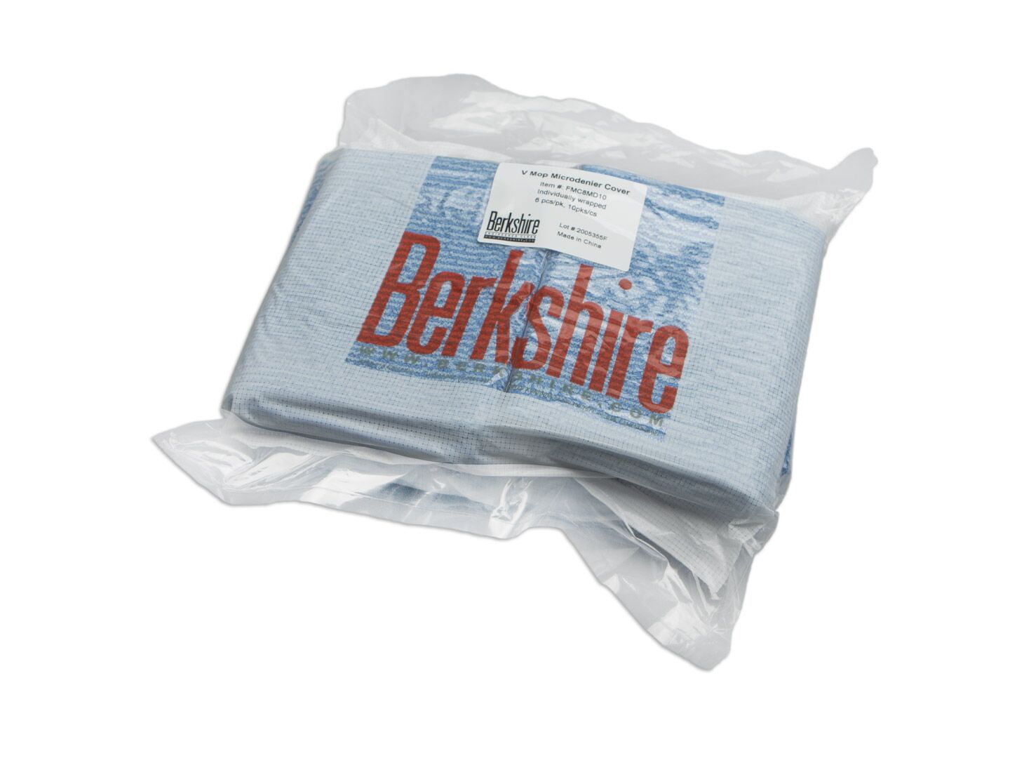 Berkshire’s blue twisted loop microdenier mop cover. Microfiber string is made of polyester and nylon fibers for exceptional surface cleaning. With three layers of absorbency this flat mop comes individually wrapped and is autoclavable. The microdenier cover also comes in an IR V Shaped Mop Microdenier Cover is gamma irradiated version.
