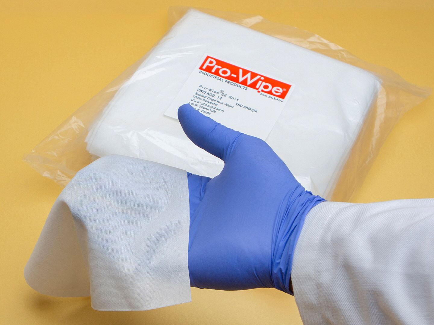 Pro-Wipe ® SE Knit is an all-purpose sealed edge knit wiper. It is cleanroom laundered for use in controlled environment and industrial applications. This is a durable wiper with exceptional cleanliness compared to other industrial wipers. An economical alternative to a standard cleanroom knitted polyester wiper.
