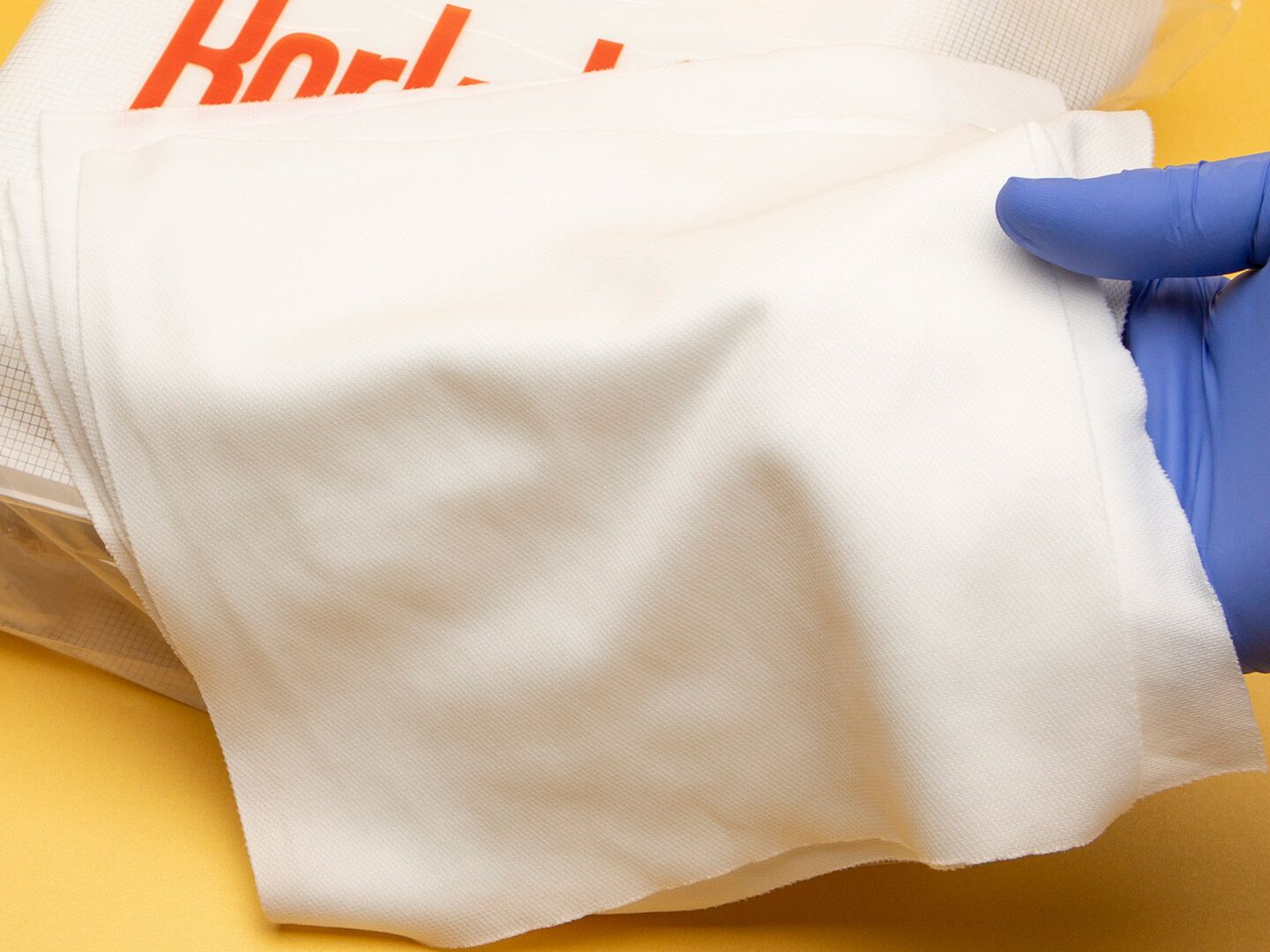 Berkshire Super Polx® 1500 is a knife-cut, cleanroom laundered wipe recommended for controlled environments rated ISO Class 4 and above. It is composed of 100% continuous filament polyester knit fabric. This combination of properties provides Super Polx® 1500 with high level of cleanliness, abrasion resistance, and chemical compatibility.
