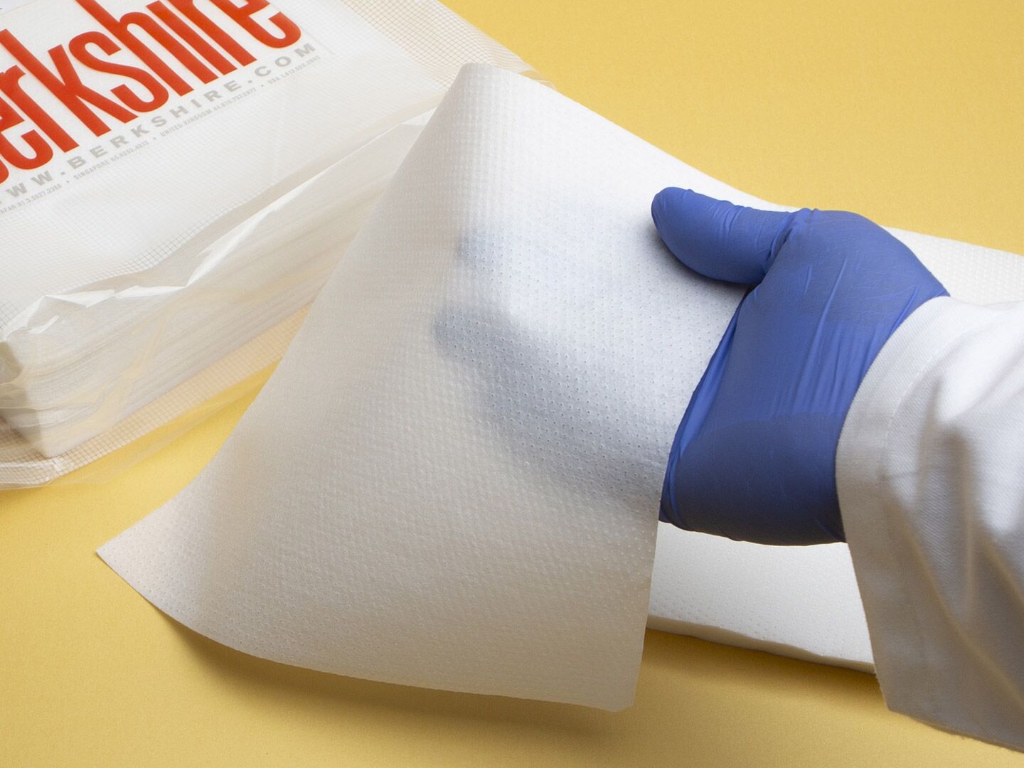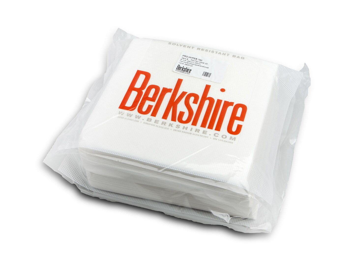 Berkshire Pro-Wipe® 750 is a solvent-resistant wipe with exceptional absorbency. It makes an excellent upgrade for industrial wipe users. It is composed of a layer of cellulose bonded between two outer layers of polypropylene. This combination of properties provides Pro-Wipe® 750 with exceptional cleanliness, absorbency, and chemical resistance to strong solvents.