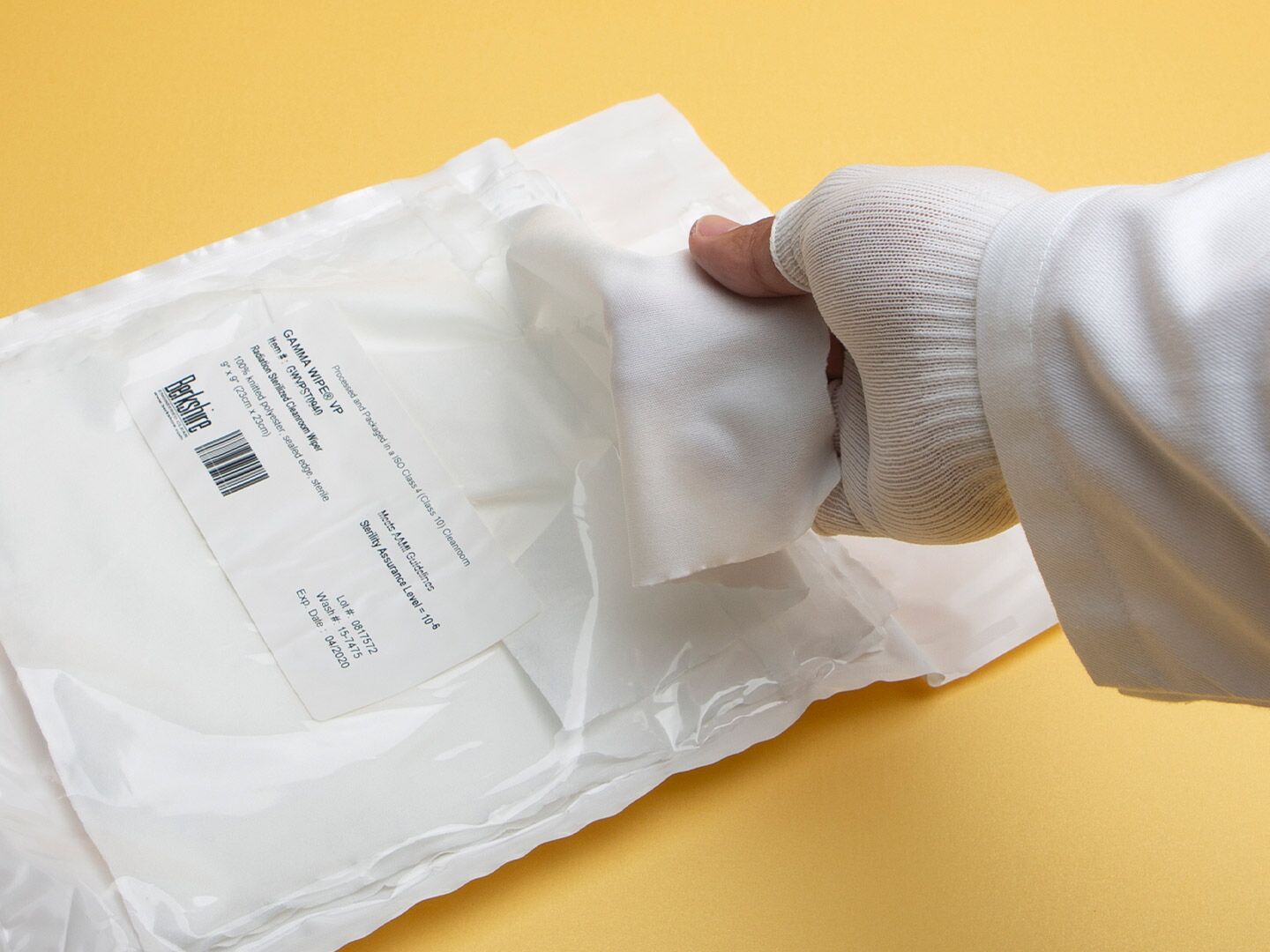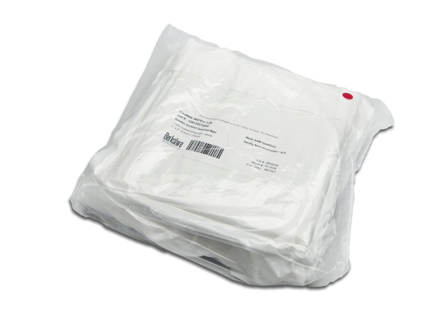 Berkshire Gamma Wipe® 120 is a knife-cut, high-sorbency, cleanroom laundered wipe recommended for use in environments rated ISO Class 4 and above. It is composed of 100% continuous filament polyester knit fabric. Each package is gamma irradiated sterile to a 10-6 Sterility Assurance Level. This combination of properties provides Gamma Wipe® 120 with the high level of cleanliness, abrasion resistance and chemical compatibility required for cleaning critical sterile processing environments.