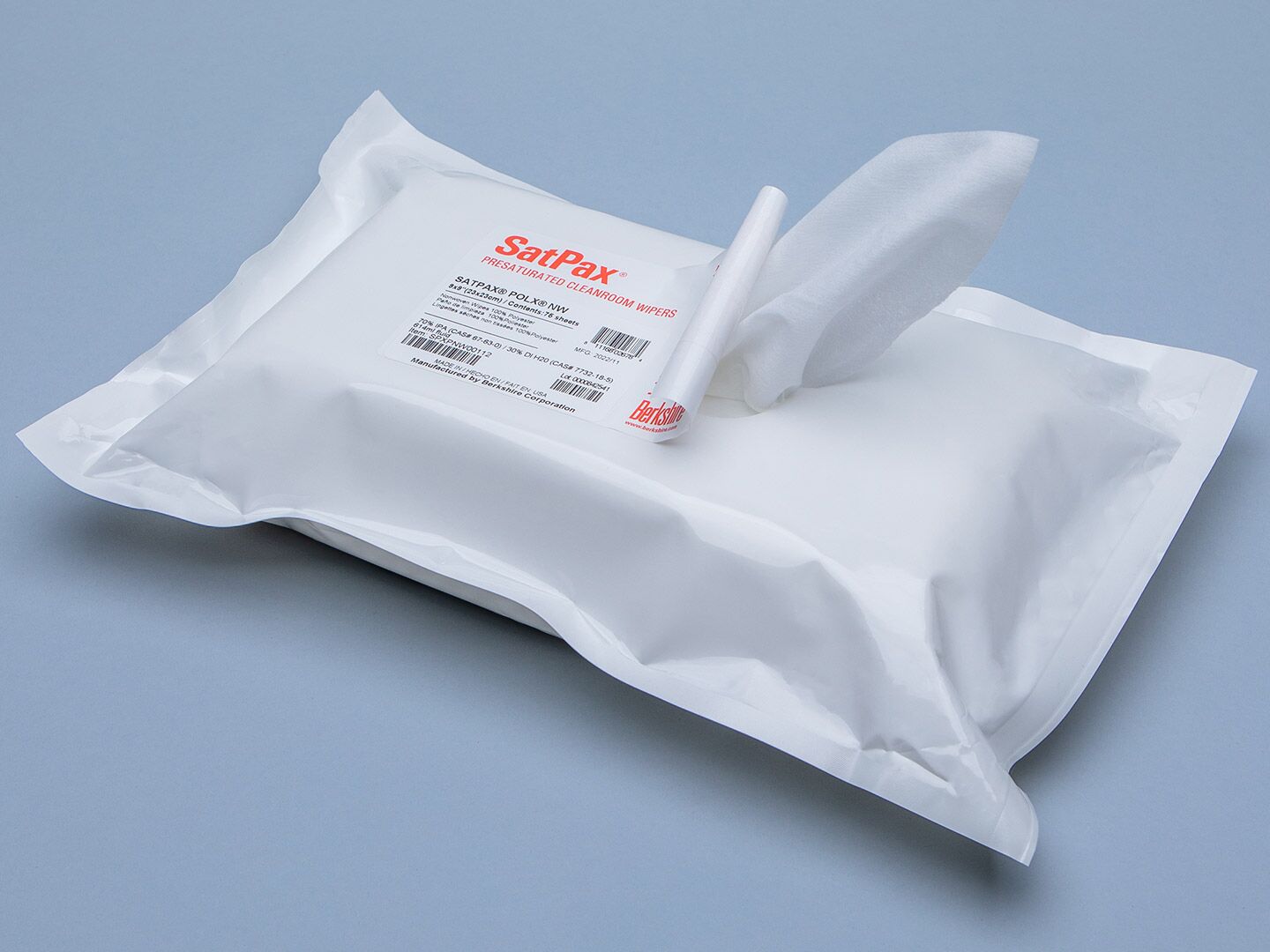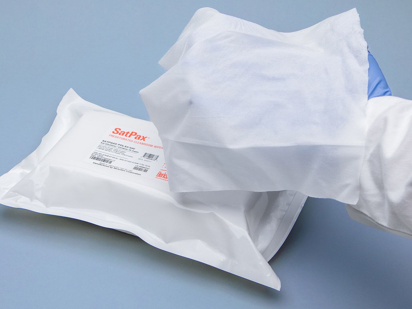 SatPax® Polx® Nonwoven is a 100% polyester hydroentangled nonwoven wiper recommended for ISO Class 5 and above environments. It is a highly soft and pliable wiper ideal for all types of sensitive surfaces. This pre-wetted format provides a cost-effective and easy-to-use solution versus traditional bulk handling of solvents, maintenance of squirt bottles, and inconsistent wetting and cleaning associated with wetting a dry wiper. Additionally, its critically low fiber and particle generation and minimal non-volatile residues make SatPax® Polx® nonwoven an exceptional choice for streak-free cleaning.