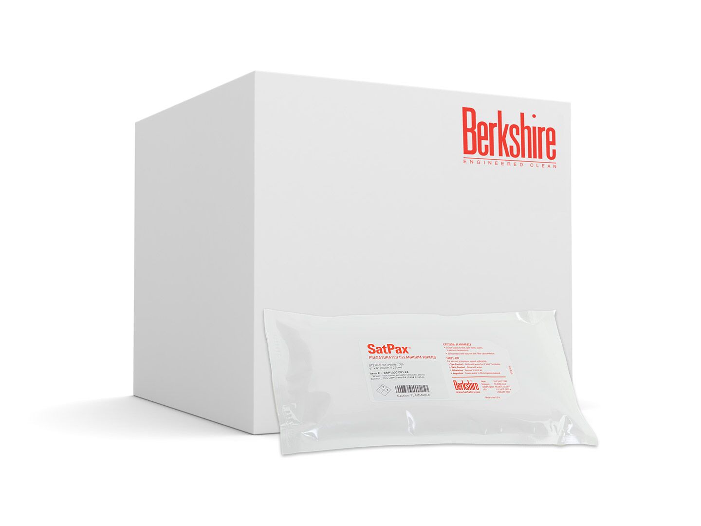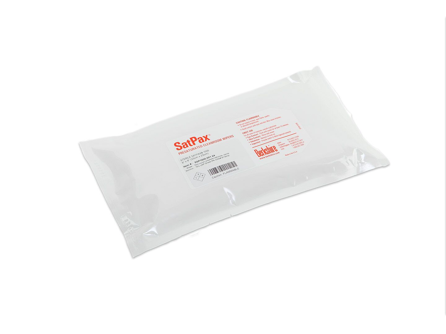Berkshire Sterile SatPax® 1000 combines Durx® 670 nonwoven wipes (composed of a hydroentangled nonwoven blend of 55% cellulose and 45% polyester) with a high-saturation level of 70% IPA and 30% DI water. This pre-wetted wipe format provides a more cost-effective and easy-to-use solution compared to manual wetting of dry wipes, which requires bulk handling of messy solvents and maintenance of squirt bottles and results in inconsistent wetting and cleaning. Each package is then gamma irradiated sterile to a 10-6 Sterility Assurance Level making the product ideal for cleaning critical sterile processing or aseptic environments.